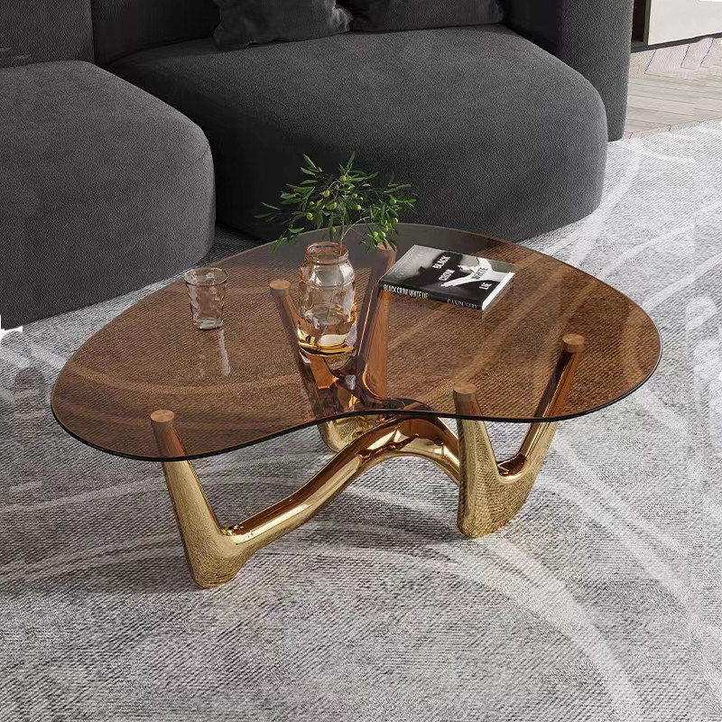 Mesa de café de cristal templado de acero inoxidable con durabilidad y estética moderna