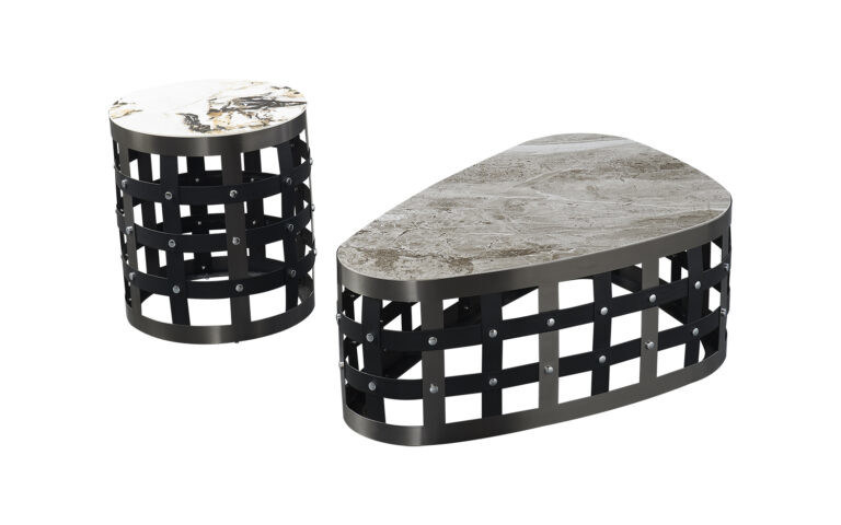Conjunto de mesas de café con rejilla de mármol cerámico Con estilo contemporáneo y lujo |