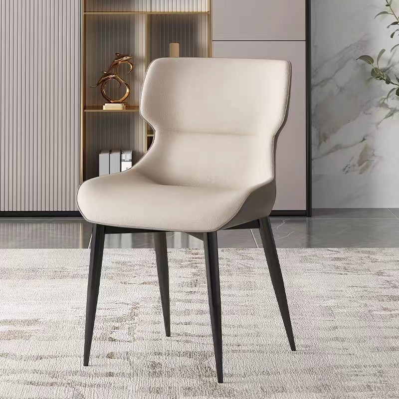 Respaldos curvos: Algunas sillas de comedor de base metálica tienen respaldos curvos, que no solo añaden interés visual sino que también proporcionan apoyo lumbar adicional.La forma curva sigue los contornos naturales de la columna, ofreciendo una experiencia de asiento cómoda.
