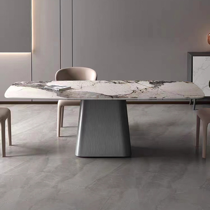 Luxo diseño único de acero inoxidable moderno mesa de comedor conjunto de mesa rectangular |