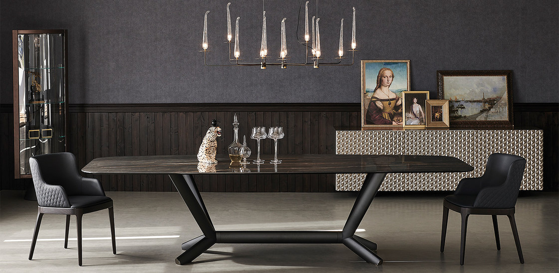 La base de la mesa está construida de metal resistente, recubierto de polvo en un acabado negro mate.diseño minimalista en forma de X que proporciona una excelente estabilidad y soporte para la parte superior de piedra de gran tamañoLas patas son cónicas para un aspecto elegante y moderno, y los niveladores ajustables en los pies le permiten nivelar fácilmente la mesa en pisos irregulares.